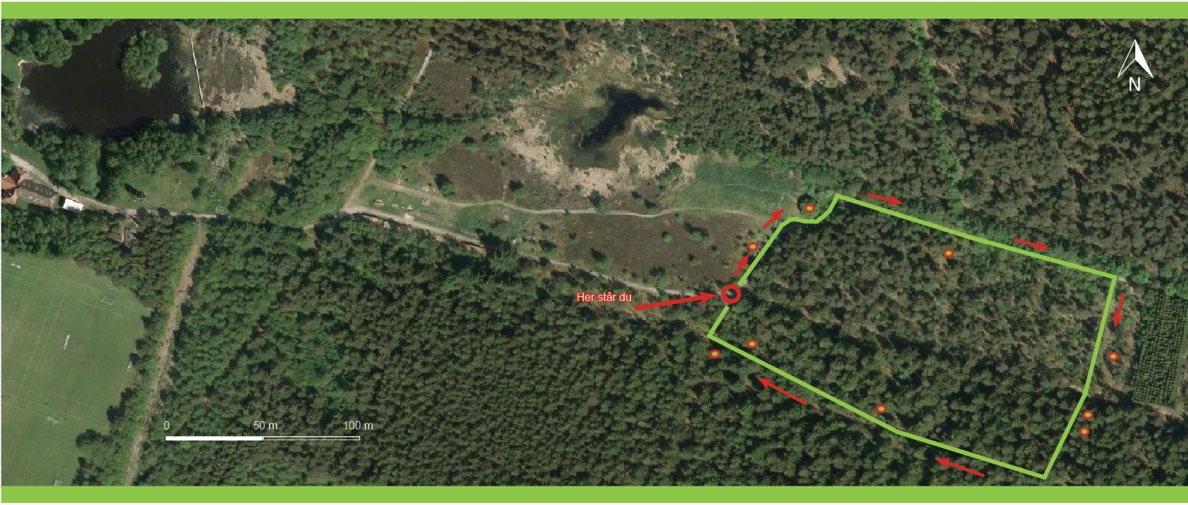 På kortet herunder kan du se hvor Sundhedsstien er, og nederst på siden finder du de forskellige poster og ideer til træning.